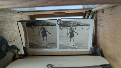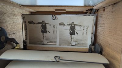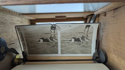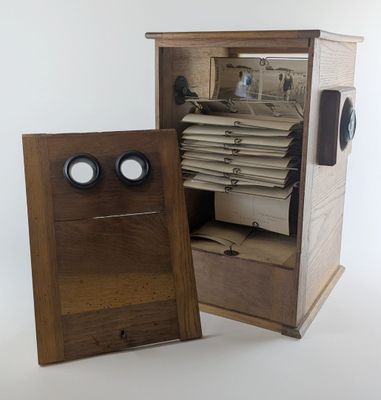 [BIARRITZ 1900] - VISIONNEUSE stéréoscopique en chêne et 26 …