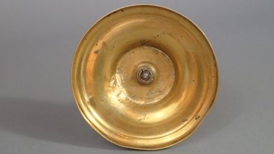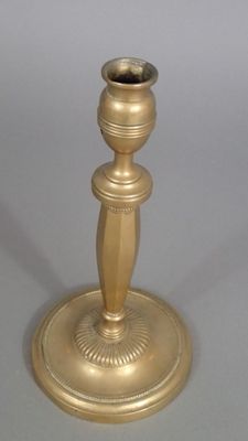 Bougeoir en laiton fondu, à décor de godrons et de perles.