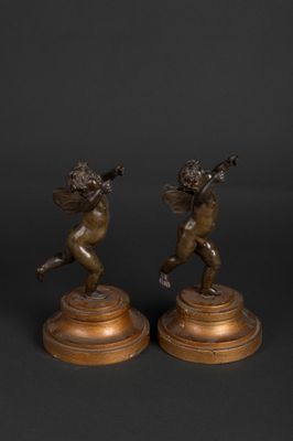 Paire de statues en bronze figurant des amours courant. Ils …