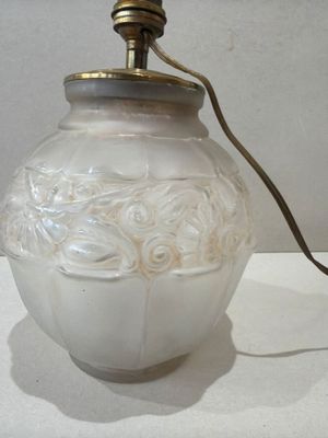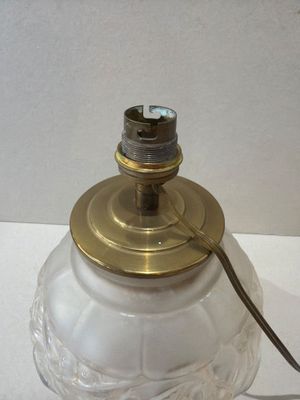 Pied de lampe en verre moulé à décor en relief, monture en l…