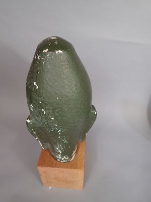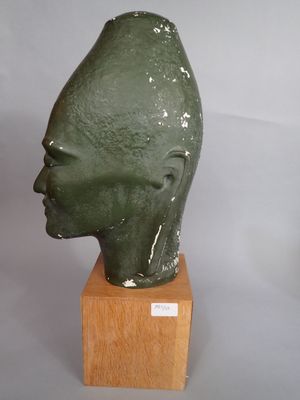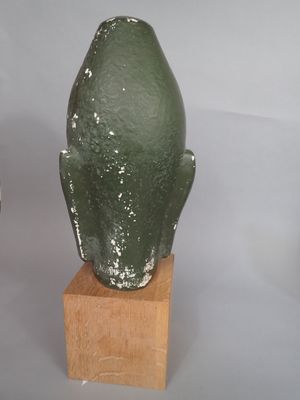 Tête de divinité asiatique en plâtre peint vert.
