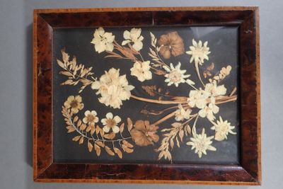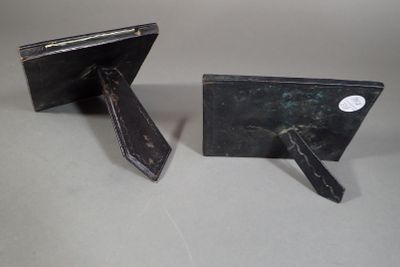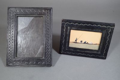 Lot de 4 petits encadrements : deux cadres en cuir repoussé,…