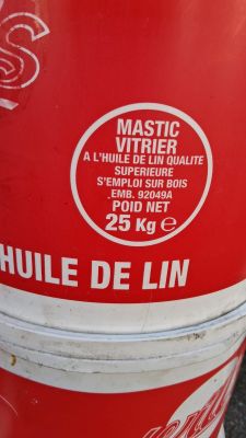 Lot de 13 seaux de mastic vitrier à l’huile de lin de la mar…