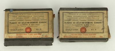 Ensemble de vingt-cinq plaques diapositives en verre, représ…