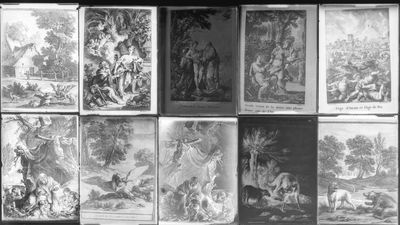 Ensemble de douze plaques diapositives en verre, représentan…