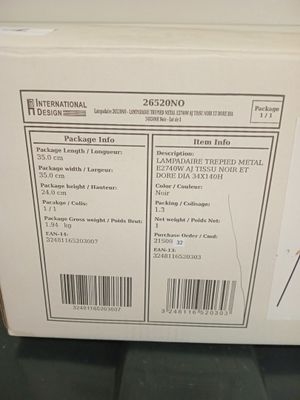 @@@ 1 lampadaire trépied métal e2740w aj tissu noir et doré …