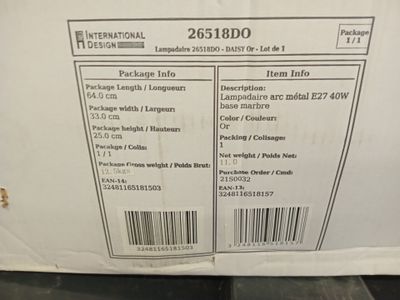@@@ 1 lampadaire ARC métal base marbre E27 40W - NEUF EN CAR…