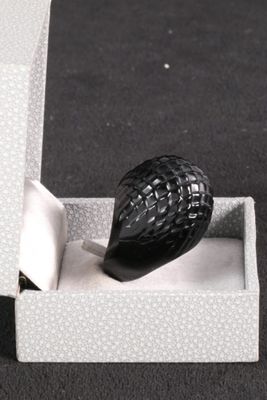 LALIQUE France - Bague dôme en cristal teinté noir moulé faç…