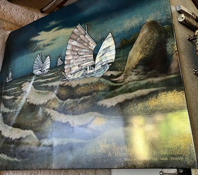 Panneau en laque à décor de jonques Vietnam - XXème