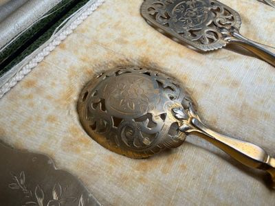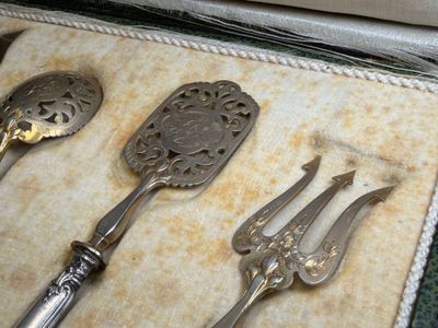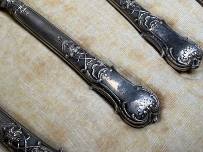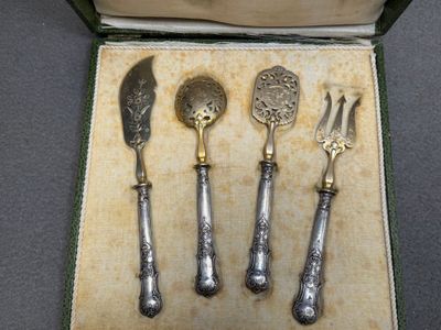 Quatre couverts à mignardise en métal argenté et argent four…