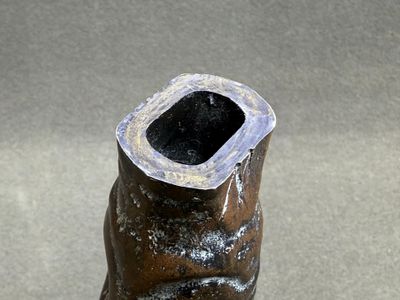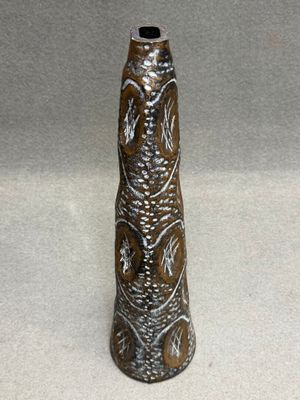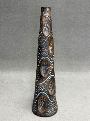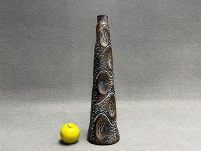 Vase à long col en verre patiné façon faux bois.