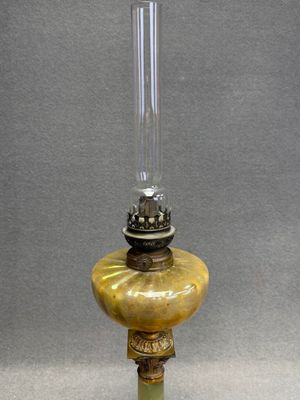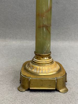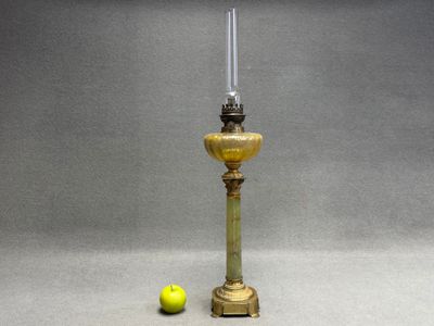 Lampe à pétrole en bronze et onyx à décor colonne corinthien…