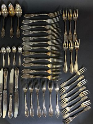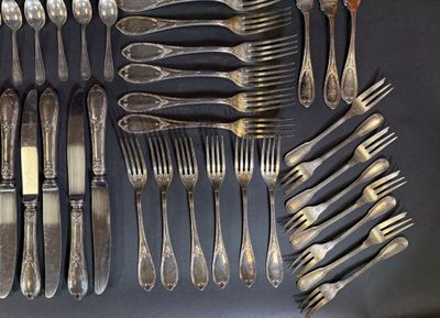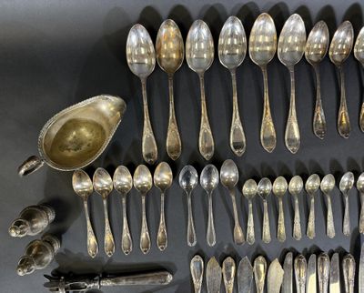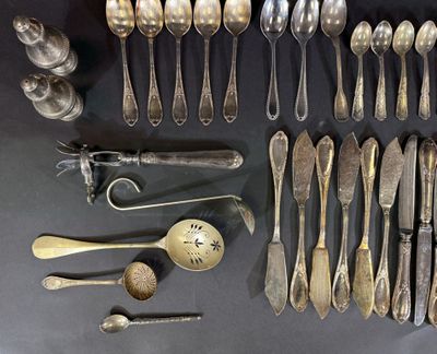 Partie de ménagère et objets en métal comprenant :