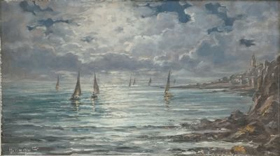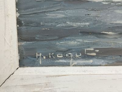 H. KOQUE "marine " huile sur isorel signé en bas à gauche.