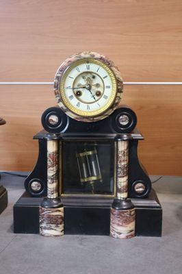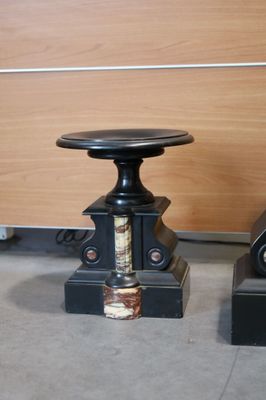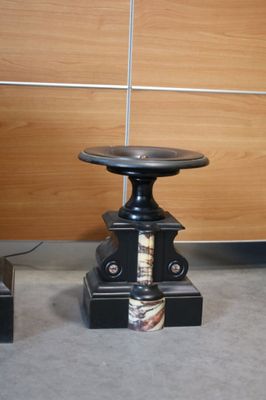 GARNITURE DE CHEMINEE En marbre noir et rose Comportant pend…