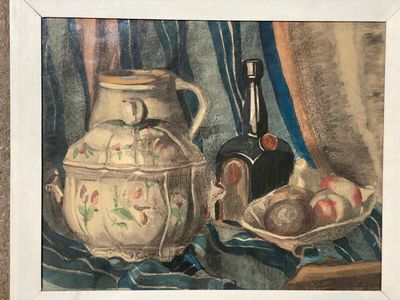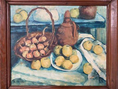 B. FERDINAND (XXème sièle). Nature morte aux pommes et aux o…