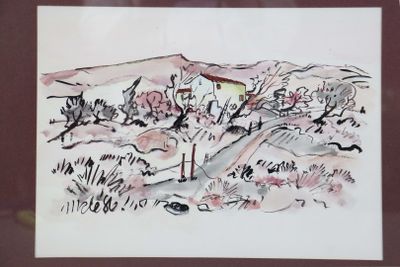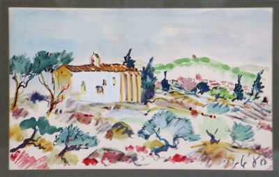 Ecole Moderne. Paysages. Deux aquarelles, encre et crayon.