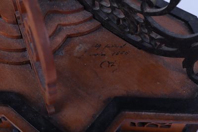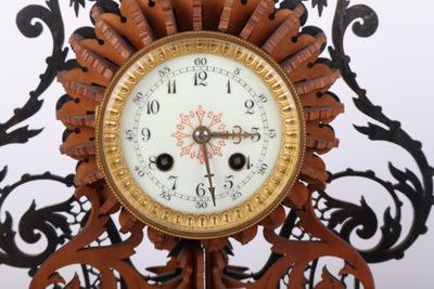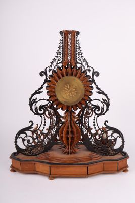 Pendule en bois découpé et os. Début du XXe siècle.