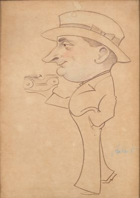 Béla Kàdàr (1877-1956) Caricature d'homme à la voiture Paste…
