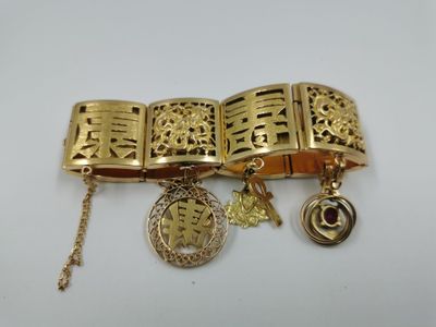 Un bracelet gourmette large souple à pampilles or 18 cts 66 …