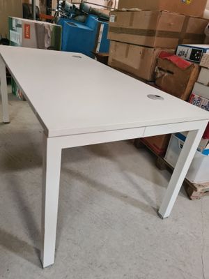 Table de bureau blanche avec deux sorties pour câble d'ordin…