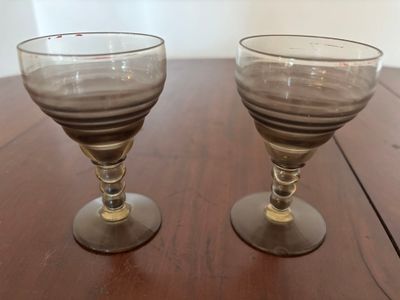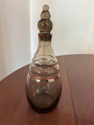 Service à liqueur en verre fumé à décor de filets rouges com…
