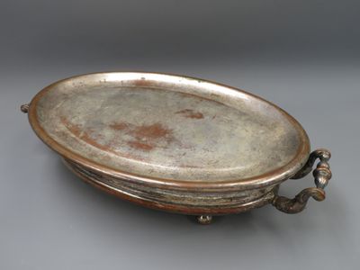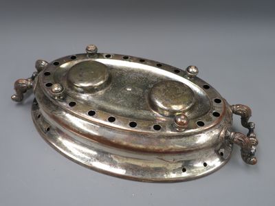 Grand chauffe plat en métal argenté.