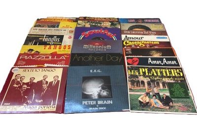 Dans un carton, important ensemble de vinyles 33T comprenant…