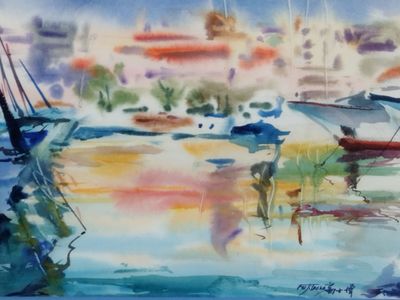 FUJITSANG "Reflets d'eau à Antibes" aquarelle SBD 26,5 x 36,…