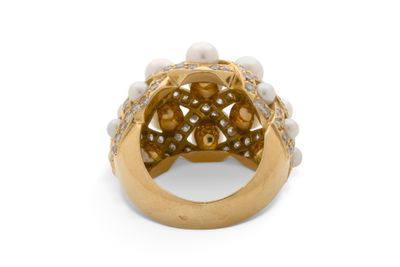 Bague “Cocktail" Perles de culture et diamants taille brilla…