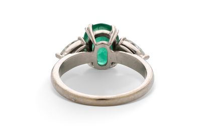 Bague “Emeraude” Emeraude ovale et diamants poires