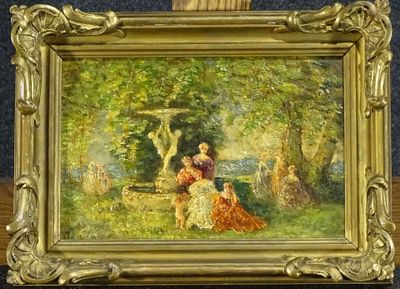 ANONYME dans le goût de Monticelli "Scène de parc", hsp, 22x…