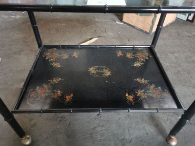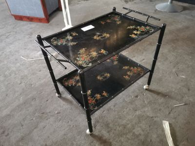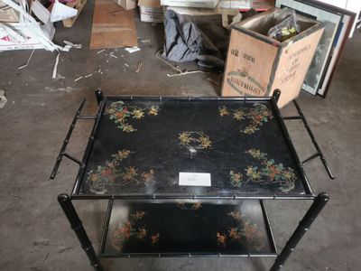Palette N°240: 1 desserte roulante en métal peint à motif fl…