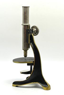 Microscope en bronze et métal chromé.