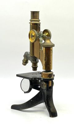 Microscope en laiton et métal laqué noir.