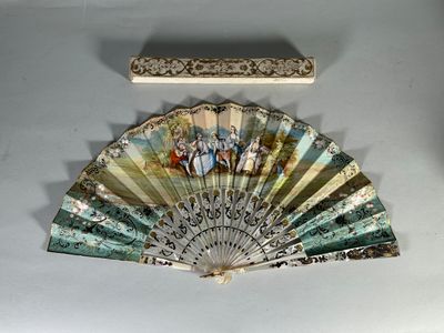 Eventail, les brins en nacre ajourée, dorée et argentée, la …