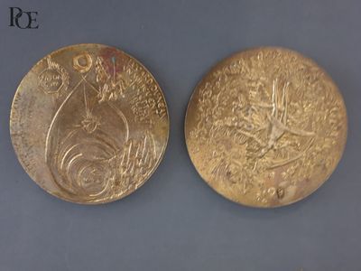 Ensemble de deux médailles de voeux en bronze doré