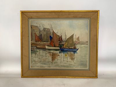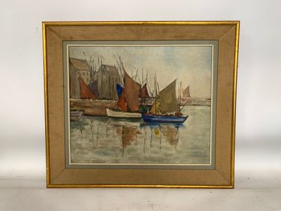 École française du XXe s. : Voiliers au port.