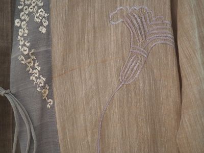Sortie de bain ou tunique beige en soie (?), à décor de fleu…