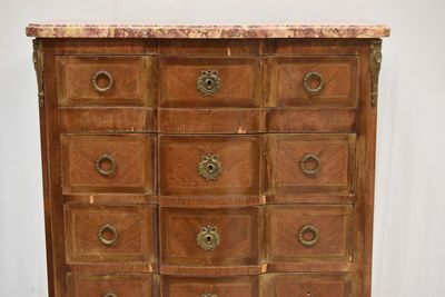 SEMAINIER en marqueterie de bois de rose ouvrant par 7 tiroi…