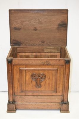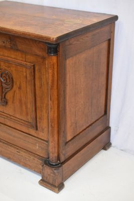 COFFRE en bois naturel à demi-colonnes, style Empire.