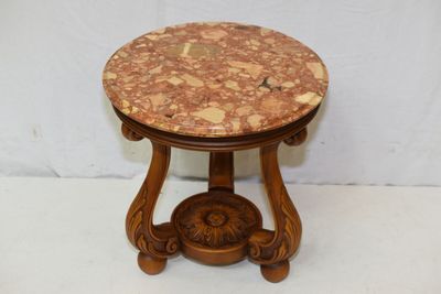 Petite table dessus de marbre, piétement tripode.