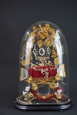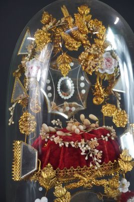 Globe de mariée. Globe en verre rapporté sur socle en bois n…