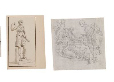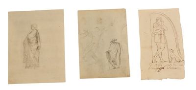 Ensemble de 11 dessins au crayon, sanguine et encre dont une…