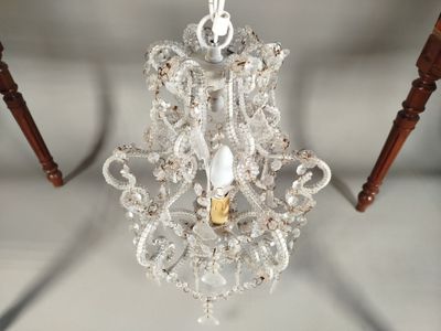 Lustre de forme balustre en métal laqué blanc à une lumière,…