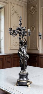 Paire d'imposant candélabres en bronze à patine brune.