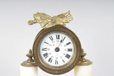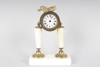petite pendule portique en albatre et laiton doré. Style Lou…
