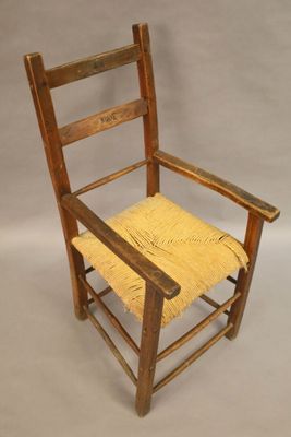 fauteuil rustique, à dossier à bandeaux et assise paillée.