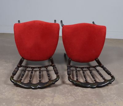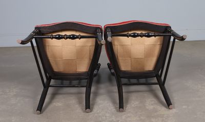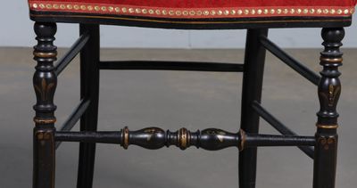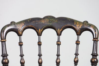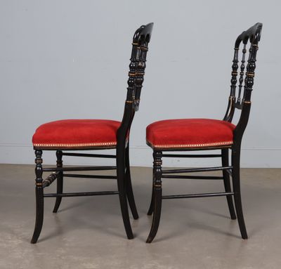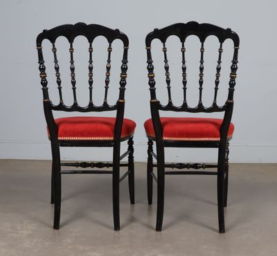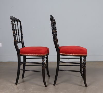 Paire de chaises en bois noirci à décor or de filets et de f…