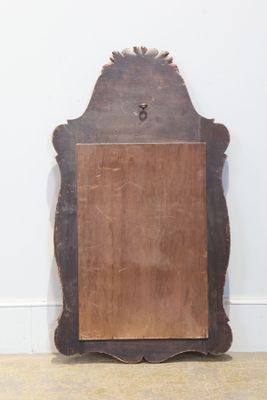 Miroir en bois mouluré et sculpté, relaqué gris et doré.